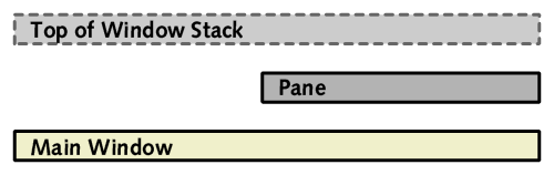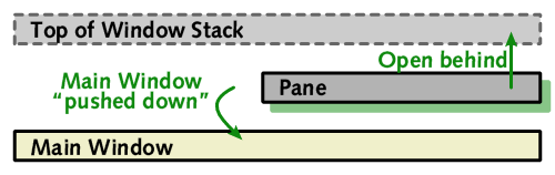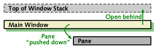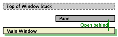 In order to get the position in the stack correct, we can open the pane behind the same window that the main window has just been opened behind, which will have the effect of placing it in the required location directly in front of the main window.