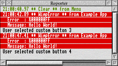 If this code, available in Download 10.1, is compiled and run then – assuming that Reporter is loaded – clicks on the iconbar should result in messages being displayed in Reporter’s window as seen in Figure 10.1.
