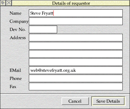 When run for the first time, Allocate will ask for some personal details (name and contact information) so that any resources allocated to you can be identified – as seen in Figure 17.5. The Dev No. field is largely obsolete in the post-Acorn world.
