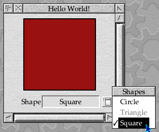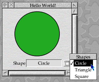 Finally, our win_set_shape() can be extended as shown in Listing 24.8 so that it updates the pop-up menu field as well as changing the shape being displayed.