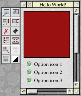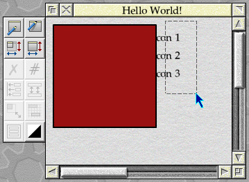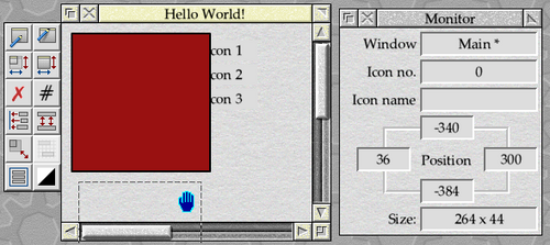We have already looked at indirected text icons in Section 15.2 and indirected text and sprite icons in Chapter 18; the third type of indirected icon is the indirected sprite icon, which is what we created in our window template to hold the sprite of the shape.