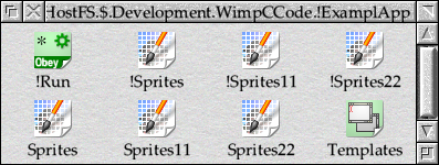 The three files should be saved into the !ExamplApp directory, which should now have the contents shown in Figure 21.2 (there might also be a !RunImage file in here, unless MkClean has been used).