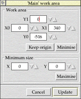 Looking at the window now, the scroll bars are still showing that the work area is bigger than the visible area. We can tidy this up by shrinking the work area down, which we do using the work area dialogue; click Menu over the window and choose Work area... to open the dialogue shown in Figure 21.12.